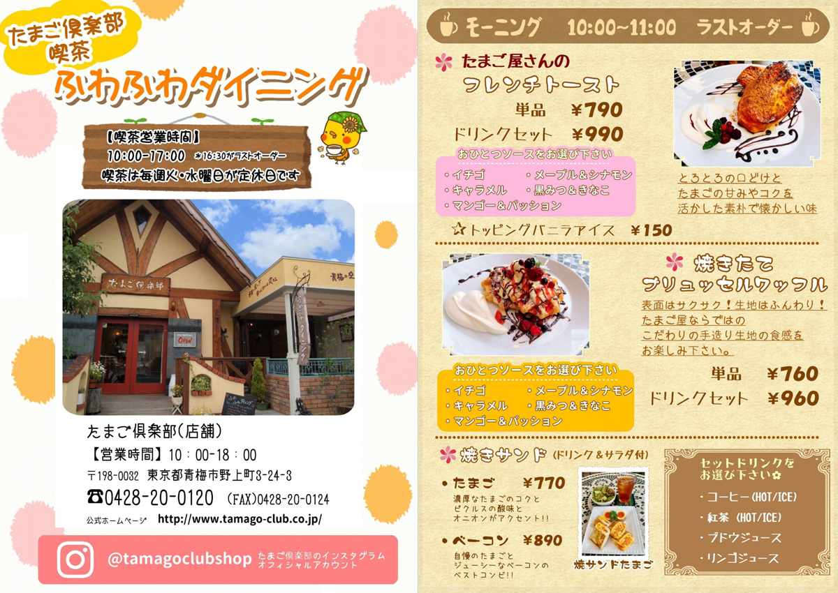 喫茶ふわふわダイニングの定休日変更及びメニュー価格改定のお知らせ