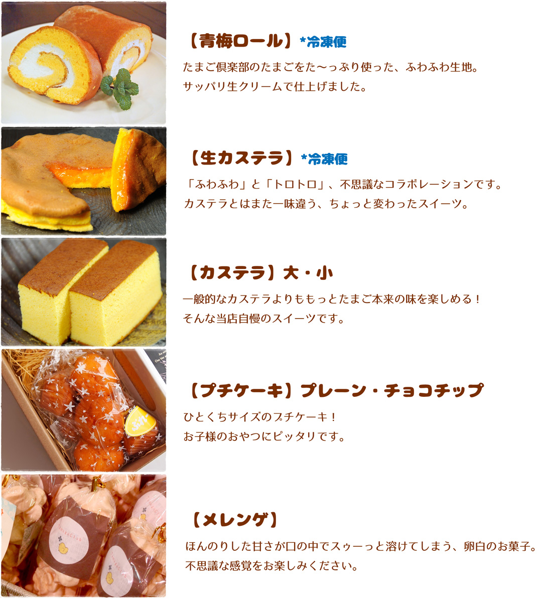 (ロールケーキ・生カステラは冷凍便のため、たまごと同梱できません)