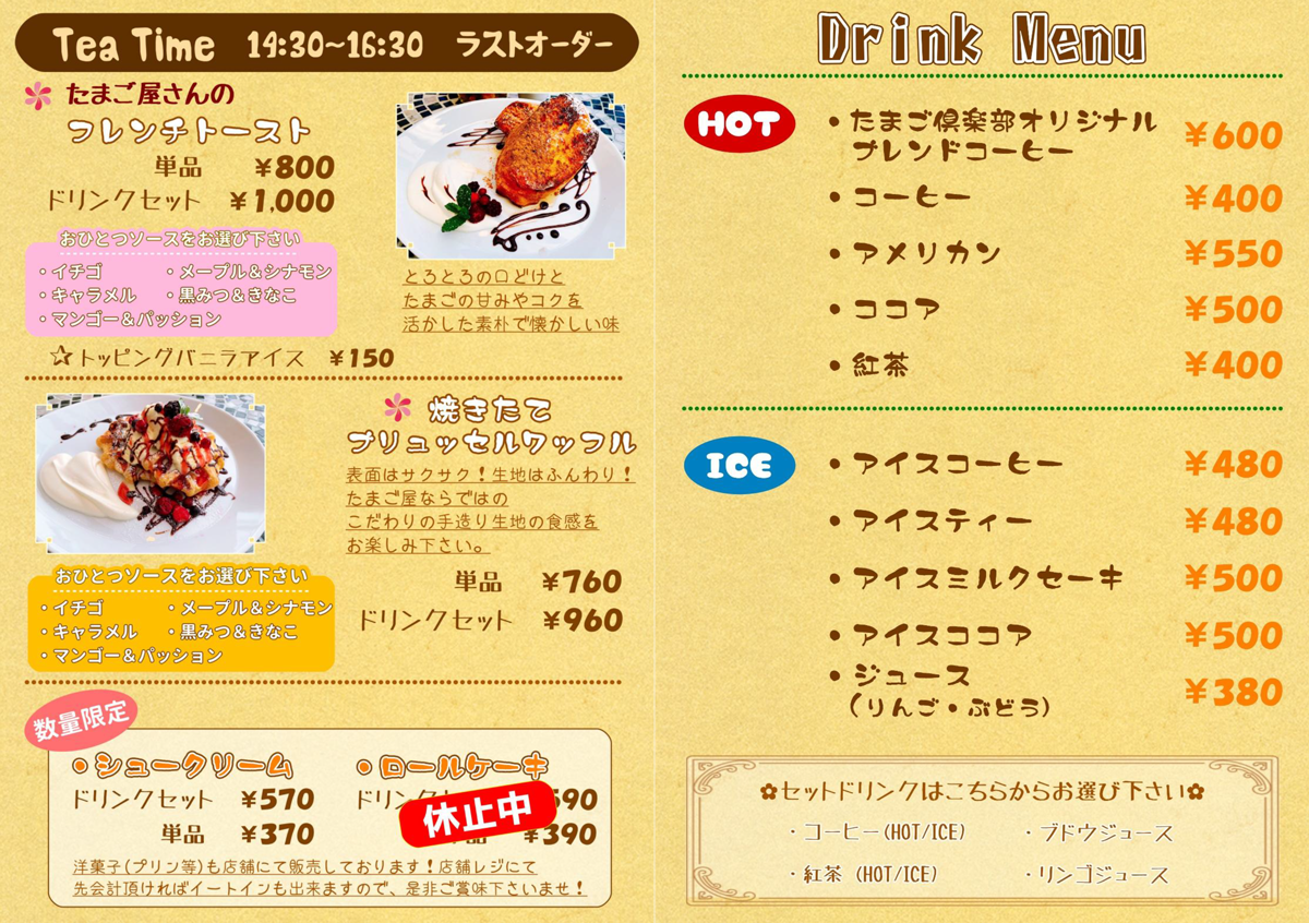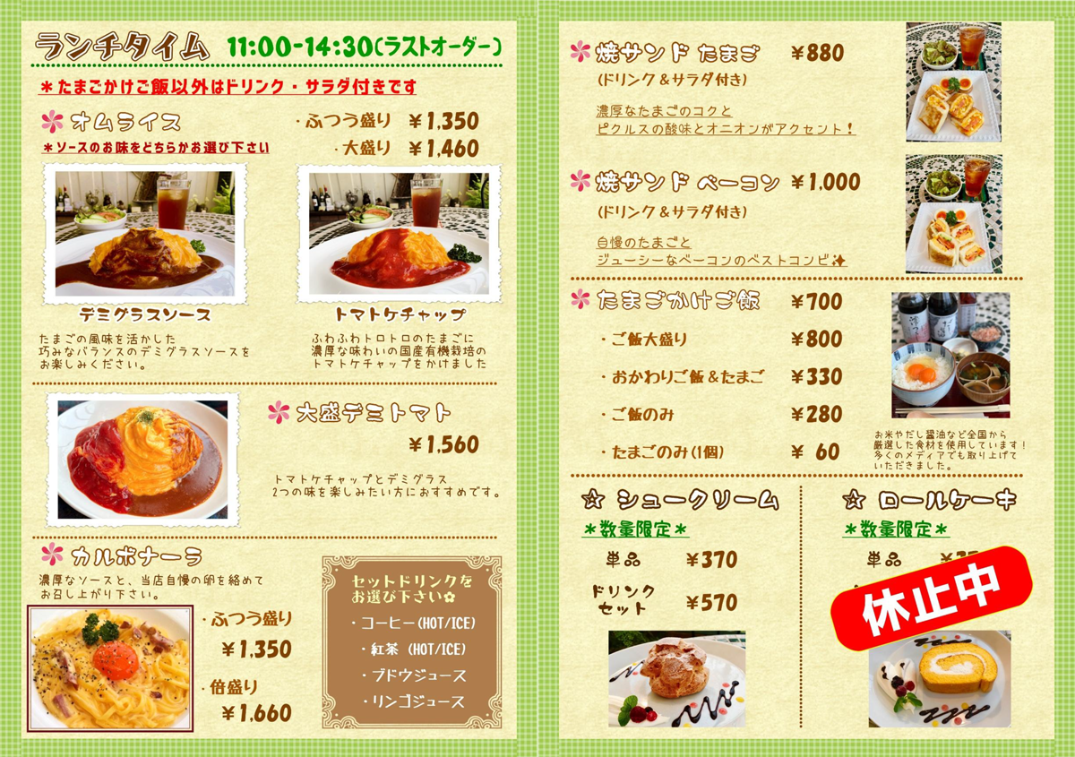 喫茶ふわふわダイニングの定休日変更及びメニュー価格改定のお知らせ